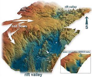 Actually, the Red Sea is an ideal study object for marine geologists. There they can observe the formation of an ocean in its early phase. However, the Red Sea seemed to go through a different birthing process than the other oceans. Now, Scientists at the GEOMAR Helmholtz Centre for Ocean Research Kiel and the King Abdulaziz University in Jeddah were able to show that salt glaciers have distorted the previous models. The study was just published in the international journal "Earth and Planetary Science Letters". Pacific, Atlantic and Indian Ocean, with the land masses of the Americas, Europe, Asia, Africa and Australia in between - that's how we know our earth. From a geologist's point of view, however, this is only a snapshot. Over the course of the earth's history, many different continents have formed and split again. In between oceans were created, new seafloor was formed and disappeared again: Plate tectonics is the generic term for these processes. The Red Sea, where currently the Arabian Peninsula separates from Africa, is one of the few places on earth where the splitting of a continent and the emergence of the ocean can be observed. During a three-year joint project, the Jeddah Transect Project (JTP), researchers at the GEOMAR Helmholtz Centre for Ocean Research Kiel and the King Abdulaziz University (KAU) in Jeddah, Saudi Arabia, have taken a close look at this crack in the earth's crust by means of seabed mapping, sampling and magnetic modeling. "The findings have shed new light on the early stages of oceanic basins, and they specifically change the school of thought on the Red Sea," says Dr. Nico Augustin from GEOMAR, lead author of the study. It has now been published in the scientific journal "Earth and Planetary Science Letters". It is, and was, undisputed that a continent is stretched and thinned out by volcanic activity before it ruptures and a new ocean basin is formed. The rifting occurs where the greatest stretching takes place. However, the detailed processes during the break-up are debated in research. On the one hand, one needs to better understand the dynamics of our home planet. "On the other hand, most marine oil and gas resources are located near such former fracture zones. This research can therefore also have economic and political implications," says Professor Colin Devey (GEOMAR), co-author of the study. Until now, conventional knowledge said that a continent is breaking apart more or less simultaneously along an entire line, and the ocean basin is formed all at once. The Red Sea, however, did not fit into this picture. Here, a model was favored with several smaller fracture zones, lined up one after the other, that would unite gradually, which in turn would lead to a relatively slow emergence of the ocean during a long transition phase. "Our studies show that the Red Sea is not an exception but that it takes its place in line with the other ocean basins," says Augustin. The previous picture we had of the ocean floor in the Red Sea was simply corrupted by salt glaciers. "The volcanic rocks we recovered are similar to those from other normal mid-ocean ridges," says co-author Froukje van der Zwan, working on her PhD as part of the JTP. During the early formation stages of the Red Sea, the area was covered by a very shallow sea that dried up repeatedly. This created thick salt deposits that later on broke apart with the continental crust. Over geologic time periods, salt shows tar-like behavior and begins to flow. "Our new high-resolution seabed maps and magnetic modeling show that the kilometer-thick salt deposits, after the break-up of the Arabian Plate from Africa, flowed like glaciers toward the newly created trench and thus over the oceanic crust due to gravity," says Augustin. Since these submarine salt glaciers do not cover the rifting zone uniformly over the entire length, the impression of several small fracture zones was created. The consequences of this discovery are profound: For one, there really seems to be only one single mechanism worldwide for the dispersal of a continent. And secondly, is not yet known how much ocean crust is covered by salt. This questions the previous dating of the opening of the Red Sea. In addition, the volcanically active trench rift zone of the Red Sea, surrounded by salt glaciers, is host of a giant sink filled with a very hot and very salty solution. "Since the sediment in the salt solution is rich in metals, this so-called Atlantis II Deep is also of economic interest," says co-author Devey. It is quite conceivable that over the course of the earth's history similar deposits associated with volcanism and salt deposits were created during the opening phase of other oceans. "Thus, our studies help to clarify older research questions. But they also provide starting points for new investigations in all of the oceans," says Augustin. Augustin, N., C. W. Devey, F. M. van der Zwan, Peter Feldens, M. Tominaga, R. A. Bantan, T. Kwasnitschka (2014): The rifting to spreading transition in the Red Sea. Earth and Planetary Science Letters, 395