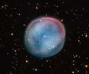 This extraordinary bubble, glowing like the ghost of a star in the haunting darkness of space, may appear supernatural and mysterious, but it is a familiar astronomical object: a planetary nebula, the remnants of a dying star. This is the best view of the little-known object ESO 378-1 yet obtained and was captured by ESO's Very Large Telescope in northern Chile. Nicknamed the Southern Owl Nebula, this shimmering orb is a planetary nebula with a diameter of almost four light-years. Its informal name relates to its visual cousin in the northern hemisphere, the Owl Nebula. ESO 378-1 [1], which is also catalogued as PN K 1-22 and PN G283.6+25.3, is located in the constellation of Hydra (The Female Water Snake). Like all planetary nebulae, ESO 378-1 is a relatively short-lived phenomenon, lasting only a few tens of thousands of years, compared to a typical stellar lifetime of several billion years [2]. Planetary nebulae are created by the ejected and expanding gas of dying stars. Although they are brilliant and intriguing objects in the initial stages of formation, these bubbles fade away as their constituent gas moves away and the central stars grow dimmer. For a planetary nebula to form, the aging star must have a mass less than about eight times that of the Sun. Stars that are heavier than this limit will end their lives in dramatic fashion as supernova. As these less massive stars grow old they start to lose their outer layers of gas to stellar winds. After most of these outer layers have dissipated, the remaining hot stellar core starts to emit ultraviolet radiation which then ionises the surrounding gas. This ionisation causes the expanding shell of ghostly gas to begin to glow in bright colours. After the planetary nebula has faded away, the leftover stellar remnant will burn for another billion years before consuming all its remaining fuel. It will then become a tiny - but hot and very dense - white dwarf that will slowly cool over billions of years. The Sun will produce a planetary nebula several billion years in the future and will afterwards also spend its twilight years as a white dwarf. Planetary nebulae play a crucial role in the chemical enrichment and evolution of the Universe. Elements such as carbon and nitrogen, as well as some other heavier elements, are created in these stars and returned to the interstellar medium. Out of this material new stars, planets and eventually life can form. Hence astronomer Carl Sagan's famous phrase: "We are made of star stuff." This picture comes from the ESO Cosmic Gems programme, an outreach initiative to produce images of interesting, intriguing or visually attractive objects using ESO telescopes for the purposes of education and public outreach. The programme makes use of telescope time that cannot be used for science observations. All data collected may also be suitable for scientific purposes, and are made available to astronomers through ESO's science archive.
