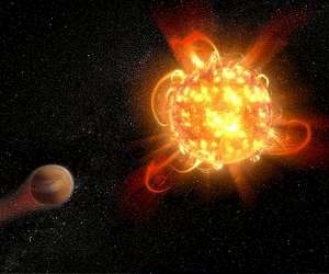 ASU astronomers catch red dwarf star in a superflare outburst Tempe AZ (SPX) Oct 19, 2018 New observations by two Arizona State University astronomers using the Hubble Space Telescope have caught a red dwarf star in a violent outburst, or superflare. The blast of radiation was more powerful than any such outburst ever detected from the Sun, and would likely affect the habiltability of any planets orbitiing it. Moreover, the astronomers say, such superflares appear more common in younger red dwarfs, which erupt 100 to 1000 times more powerfully than they will when they age. The su ... read more
