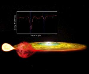 Einstein's Theory of Relativity, Critical For GPS, Seen In Distant Stars Huntsville AL (SPX) Oct 23, 2020 What do Albert Einstein, the Global Positioning System (GPS), and a pair of stars 200,000 trillion miles from Earth have in common? The answer is an effect from Einstein's General Theory of Relativity called the "gravitational redshift," where light is shifted to redder colors because of gravity. Using NASA's Chandra X-ray Observatory, astronomers have discovered the phenomenon in two stars orbiting each other in our galaxy about 29,000 light-years (200,000 trillion miles) away from Earth. While t ... read more