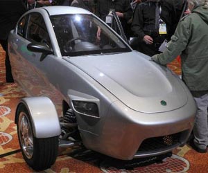 The sleek three-wheeled car looks futuristic, but, as its creator acknowledges, it uses no new technology. What makes the Elio Motors vehicle unique is its ultra-high fuel economy and an ultra-low price tag: $6,800. The vehicle, which was on display at the Showstoppers startup showcase on the sidelines of the Consumer Electronics Show in Las Vegas, promises to deliver as much as 84 miles (134 kilometers) per gallon (3.8 liters) of gasoline for highway driving. It accelerates as quickly as many cars on the road -- to 100 miles per hour in 9.6 seconds, according to the company. Urban fuel economy is estimated at 49 miles per gallon. Company founder Paul Elio said he came up with the idea because "I got mad about seeing all this wealth leave the country" for imported petroleum. An engineer by training, Elio began the firm in 2008 and recently took over an abandoned General Motors plant in Louisiana -- one which had been producing the gas-guzzling Hummer. In order to deliver the best fuel economy, the car has a cockpit wide enough only for the driver, with a passenger seat in the rear. It has two wheels in front and tapers in the rear to a single wheel. "Front-to-back seating, that's the key to mileage," Elio told AFP. This makes it principally a one-person car, but Elio said the vehicle is a good solution for the millions who drive along to work or leisure events. Elio readily admits there is no special technology in the car -- it has a three-cylinder internal combustion gasoline engine, power windows, air conditioning and anti-lock brakes. While it does not have some of the on-board electronic gadgety found in other vehicles, drivers can connect their smartphones for navigation, apps and more. "This was a design completely based on existing engineering," says company spokesman Jim Andrews. The car has a top crash-impact rating from the National Highway Transportation Safety Board, and is expected to meet all US safety standards. Elio is targeting the US market but hopes to eventually ship internationally. He has more than 6,000 orders from customers who have paid a deposit, and hopes to start delivering in the first quarter of 2015. He also plans to speak with major automakers, including Chrysler, about possible partnerships. It's not clear how much of an impact the Elio vehicle will have, but it comes after a sizzling debut for another startup carmaker, Tesla, which sells a $70,000 electric car. Other three-wheelers may be in the words as well: a three-wheel concept car from Toyota was on display at the huge electronics exhibition. Elio said he is encouraged by the response to the car. "We didn't design it to be cool," he said. "It was cool by accident."