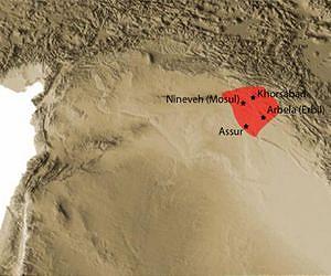 Map of traditional Assyrian heartland and cities mentioned in ancient text. Image courtesy Adam Schneider.
