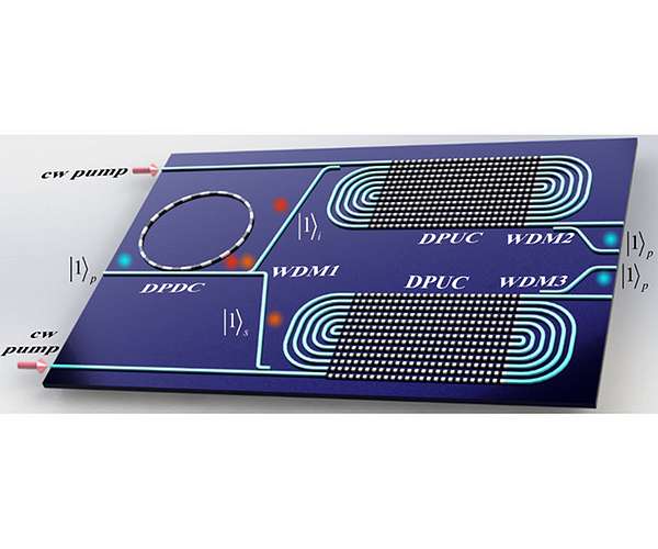 In the reported scheme, the key component is the photon-number doubling unit (PDU), which can double photon numbers while keeping the spectrum unchanged. In the PDU, the most challenging part is the deterministic conversion from single-photon to bi-photon. It has been proposed and theoretically studied before, but only with an ideal ?(2) or ?(3) material assumption. Based on practical material parameters, the researchers proposed the first experimentally feasible scheme for the PDU process. The team shows that the PDU is universal for generation of N-qubit states for different quantum technology applications, proposing as examples on-chip designs for N-photon Fock state, cluster state, and GHZ state.