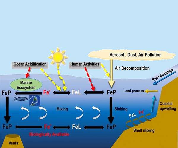 The micronutrient iron (Fe) is recognized as a key factor in controlling oceanic primary productivity, and subsequently impacting the carbon cycle and marine ecosystem. The high-latitude area of the North Pacific is one of the three main high-nutrient and low-chlorophyll (HNLC) regions on Earth. Also, the growth of phytoplankton is limited by the availability of Fe. Climate change, human activities and ocean acidification are expected to influence the availability and transport of Fe in the ocean. Therefore, it is of great importance to study the Fe cycle and make reliable predictions for the future. "As a result of human activity, the amount and composition of Fe induced by atmospheric decomposition has changed and affected the ocean. After depositing into the ocean, the distribution and transport of Fe is mainly determined by physical processes, e.g., mixing and upwelling. "So, clarifying the sources and transport of biologically available Fe are key scientific questions for understanding the marine ecosystem," explains Dr. Fei Chai, a researcher at the Second Institute of Oceanography and corresponding author of a project report recently published in Atmospheric and Oceanic Science Letters. "The biological availability of Fe in the ocean also depends on the amount and strength of organic complex ligands. The spatial distribution of Fe-binding ligands is highly variable, with more ligands found in the Northwest Pacific than Northeast Pacific. Also, the strength of ligands is mainly affected by the pH of water, with lower pH reducing the strength of ligands and decreasing the Fe uptake rate of diatoms. "Therefore, under the influence of ocean acidification, the distribution and strength of Fe-binding ligands will change considerably, with subsequent impacts on the ecosystem of the North Pacific," adds Dr. Chai. Dr. Fei Chai and his team, from the Second Institute of Oceanography, will develop and utilize a coupled physical-biological-Fe model, named ROMS-CoSiNE-Fe, in the North Pacific. The model will incorporate the Fe cycle for the upper North Pacific and make predictions of primary production and marine ecosystems in the future. The project is funded by the National Natural Science Foundation of China from 2018 to 2022. "These studies will explore the sources and transport of biologically available Fe in the HNLC region. The results can give scientific advice to stakeholders on the feasibility of conducting ocean Fe fertilization," says Dr. Chai, "In the future, we hope to better understand the rate of Fe uptake by phytoplankton and make predictions of changes in the marine ecosystem of the North Pacific."