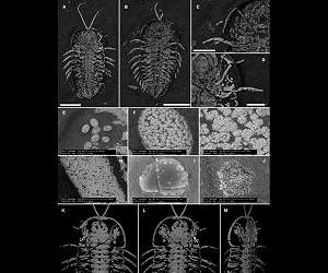Despite a plethora of exceptionally preserved trilobites, trilobite reproduction has remained a mystery. No previously described trilobite has had unambiguous eggs or genitalia preserved. This study by Thomas A. Hegna and colleagues reports the first occurrence of in situ preserved trilobite eggs from the Lorraine Group in upstate New York, USA. Like other exceptionally preserved trilobites from the Lorraine Group, the complete exoskeletons are replaced with pyrite. The eggs are spherical to elliptical in shape and nearly 200 micrometers in size. The location of the eggs is consistent with where modern female horseshoe crabs release their unfertilized eggs from the ovarian network within their head. Trilobites likely released their eggs and sperm through a genital pore of as-yet-unknown location (but probably near the posterior boundary of the head). Because pyrite preferentially preserves the external features of fossils, there is probably a bias in the fossil record toward the preservation of arthropods that brood eggs externally. If the reproductive biology of these trilobites is representative of other trilobites, they likely spawned with external fertilization as well, which may be the ancestral mode of reproduction for early arthropods.