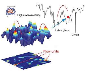 Flow units: Dynamic defects in metallic glasses Beijing, China (SPX) Nov 08, 2018 In a crystal, structural defects such as dislocations or twins are well defined and largely determine the mechanical and other properties. These defects can be easily identified as the broken long-range atomic order. However, the lack of a periodic microstructure makes the searching of similar structural defects a difficult task in amorphous materials. Recent studies found that amorphous materials are intrinsically spatially and temporally heterogeneous, which implies the possibility to identify t ... read more