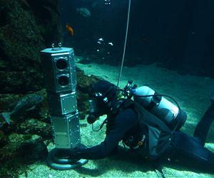 A school of sardines fluttered by as giant leafy kelp swayed back and forth at the California Science Center in Los Angeles on Monday, June 22. At the bottom of this 188,000-gallon aquatic tank, a bright orange garibaldi fish seemed to ignore a new visitor to the aquatic wonderland: the silver body of an under-ice rover. The rover's presence 24 feet (7.3 meters) underwater at the science center this week helped researchers at NASA's Jet Propulsion Laboratory, Pasadena, California, test the innovative rover's systems. On Monday, the visitors' guide to the rover and the fish around it was Andy Klesh, principal investigator for the rover at JPL and volunteer diver at the science center. As bubbles flowed from his face mask, Klesh explained that the buoyant rover can be used here on Earth to study the Arctic and Antarctic. Researchers also envision that a technology like this could one day explore icy bodies in the solar system, and even look for signs of habitability and life. "A lot of what we do in deep space is applicable to the ocean," Klesh said. "This is an early prototype for vehicles that could one day go to Europa and other planetary bodies with a liquid ocean covered by ice. It's ideal for traveling under the ice shelf of an icy world." Provisionally called the Buoyant Rover for Under-Ice Exploration (BRUIE), this rover would normally float and have wheels. Its wheels would roll along on the underside of ice, as if the ice were the ground. Operating underwater, the rover would take images and collect other data to help scientists understand the important interface between ice and water. "Our work aims to build a bridge between exploring extreme environments in our own ocean and the exploration of distant, potentially habitable oceans elsewhere in the solar system," said Kevin Hand, co-investigator for the rover and planetary scientist at JPL. Dan Berisford, John Leichty and Josh Schoolcraft at JPL are also co-investigators on the project. The first iteration of this rover was a two-wheeled vehicle that the team took to Barrow, Alaska, in 2012. After the team sawed a hole in the ice, they placed the rover underwater, totally untethered. Back at JPL, engineers drove the rover remotely. "This was the first time an under-ice vehicle had been operated via satellite," Klesh said. The new version is longer, has a thicker body and is designed for ocean depths up to about 700 feet (200 meters). The central body contains computers, sensors and communication equipment. On either side of the central section is a "pod," each with sensors, lights, a camera, batteries, instruments and two motors. The software for this rover is similar to what is being used for Mars Cube One, two communication-relay CubeSats that will launch with NASA's InSight Mars lander in 2016. Researchers are currently working to increase the rover's autonomy and beef up its hazard avoidance, with an eye toward eventually letting the rover survey a frozen lake on its own. At the science center, the rover gathered data about its surroundings, including taking pictures of nearby fish and the people on the other side of the glass. The rover did not have its wheels, but the sections of its body rotated once every hour, giving visitors a show as it twisted around. "We're a long way off from exploring Europa's ocean, but the young children visiting the California Science Center and seeing our robot could be the ones building the vehicles that go there," Hand said. The rover's stint at the science center from June 22 to June 24 was a rare instance in which it encountered warm-climate sea creatures. The rover's next destination will likely be near one of Earth's frigid poles.