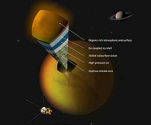 New analysis suggests unique atmospheric chemistry explains why the polar vortex on Saturn's moon Titan isn't behaving as expected. Titan is Saturn's largest moon, and is the only moon in the solar system with a sizable atmosphere. Recent observations suggest that atmosphere hasn't been behaving as predicted by models. During the winter, air in the upper atmosphere tends to warm as cold air sinks, compresses and becomes heated. However, recent readings suggest the moon's polar vortex is oddly cold. Before its fiery demise in Saturn's atmosphere on September 15, the Cassini spacecraft obtained a long series of observations of Titan's polar atmosphere covering nearly half of Titan's 29.5 year solar year - as measured by the time Saturn and Cassini take to circle the Sun - using the Composite Infrared Spectrometer (CIRS) instrument. Through the years, NASA's Cassini spacecraft -- which dove into Saturn's atmosphere for a final time earlier this year -- executed a number of Titan flybys, measuring temperature and collecting samples from the polar atmosphere above the winter hemisphere. The probe's data confirmed a hot spot began to form in 2009 -- as expected. But readings showed a cold spot began to form in 2012. Temperatures dipped to 120 Kelvin in 2015, before the hot spot returned in 2016 and 2017. Researchers at the University of Bristol hypothesize that the unique chemical composition of Titan's atmosphere accounts for the unexpected variability. "For the Earth, Venus, and Mars, the main atmospheric cooling mechanism is infrared radiation emitted by the trace gas CO2 and because CO2 has a long atmospheric lifetime it is well mixed at all atmospheric levels and is hardly affected by atmospheric circulation," Nick Teanby, planetary scientist at Bristol, said in a news release. "However, on Titan, exotic photochemical reactions in the atmosphere produce hydrocarbons such as ethane and acetylene, and nitriles including hydrogen cyanide and cyanoacetylene, which provide the bulk of the cooling." The hydrocarbons found in Titan's atmosphere aren't evenly distributed. Thus, perturbations in the polar vortex can quickly alter the makeup of the different atmospheric layers. Researchers suggest the sinking of cold air can leave high concentrations of trace gas chemicals in the upper atmosphere, causing rapid cooling. Their analysis -- published this week in the journal Nature Communications -- explains the presence of hydrogen cyanide ice clouds above Titan's winter pole, as photographed by Cassini's camera in 2014. "This effect is so far unique in the solar system and is only possible because of Titan's exotic atmospheric chemistry," Teanby said. "A similar effect could also be occurring in many exoplanet atmospheres having implications for cloud formation and atmospheric dynamics."