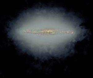 A study of spiral galaxies seen edge-on has revealed that "halos" of cosmic rays and magnetic fields above and below the galaxies' disks are much more common than previously thought. An international team of astronomers used the Karl G. Jansky Very Large Array (VLA) to study 35 edge-on spiral galaxies at distances from 11 million to 137 million light-years from Earth. The study took advantage of the ability of the VLA, following completion of a decade-long upgrade project, to detect radio emission much fainter than previously possible. "We knew before that some halos existed, but, using the full power of the upgraded VLA and the full power of some advanced image-processing techniques, we found that these halos are much more common among spiral galaxies than we had realized," said Judith Irwin, of Queen's University in Canada, leader of the project. Spiral galaxies, like our own Milky Way, have the vast majority of their stars, gas, and dust in a flat, rotating disk with spiral arms. Most of the light and radio waves seen with telescopes come from objects in that disk. Learning about the environment above and below such disks has been difficult. "Studying these halos with radio telescopes can give us valuable information about a wide range of phenomena, including the rate of star formation within the disk, the winds from exploding stars, and the nature and origin of the galaxies' magnetic fields," said Theresa Wiegert, also of Queen's University, lead author of a paper in the Astronomical Journal reporting the team's findings. The paper provides the first analysis of data from all 35 galaxies in the study. To see how extensive a "typical" halo is, the astronomers scaled their images of 30 of the galaxies to the same diameter, then another of the authors, Jayanne English, of the University of Manitoba in Canada, combined them into a single image. The result, said Irwin, is "a spectacular image showing that cosmic rays and magnetic fields not only permeate the galaxy disk itself, but extend far above and below the disk." The combined image, the scientists said, confirms a prediction of such halos made in 1961. Along with the report on their findings, the astronomers also are making their first batch of specialized VLA images available to other researchers. In previous publications, the team described the details of their project and its goals. The team has completed a series of VLA observations and their latest paper is based on analysis of their first set of images. They now are analyzing additional datasets, and also will make those additional images available to other scientists when they publish the results of the later analyses. "The results from this survey will help answer many unsolved questions in galactic evolution and star formation," said Marita Krause of the Max-Planck Institute for Radioastronomy in Bonn, Germany. The data is available here