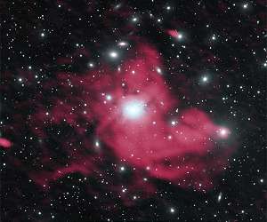 Astronomers using the National Science Foundation's Karl G. Jansky Very Large Array (VLA) have discovered new details that are helping them decipher the mystery of how giant radio-emitting structures are formed at the center of a cluster of galaxies. The scientists studied a cluster of thousands of galaxies more than 250 million light-years from Earth, named the Perseus Cluster after the constellation in which it appears. Embedded within the center, the Perseus Cluster hosts a pool of superfast particles that emit radio waves, creating a radio structure known as a "mini-halo." Mini-haloes have been found in about 30 galaxy clusters, but the halo in the Perseus Cluster is the largest known, about 1.3 million light-years in diameter, or 10 times the size of our Milky Way Galaxy. The sizes of the mini-haloes have presented a puzzle to astronomers. As the particles travel away from the cluster's center, they should slow down and stop emitting radio waves long before they reach the distances observed, according to theory. "At large distances from the central galaxy, we don't expect to be able to see these haloes," said Marie-Lou Gendron-Marsolais, of the University of Montreal. "However, we do see them and we want to know why," she added. The astronomers took advantage of the upgraded capabilities of the VLA to make new images of the Perseus Cluster that were both more sensitive to fainter radio emissions and provided higher resolution than previous radio observations. "The new VLA images provided an unprecedented view of the mini-halo by revealing a multitude of new structures within it," said Julie Hlavacek-Larrondo, also of the University of Montreal. "These structures tell us that the origin of the radio emission is not as simple as we thought," she said. The new details indicate that the halo's radio emission is caused by complex mechanisms that vary throughout the cluster. As theorized before, some radio emission is caused by particles being reaccelerated when small groups of galaxies collide with the cluster and give the particles a gravitational shove. In addition, however, the scientists now think that the radio emission is also caused by the powerful jets of particles generated by the supermassive black hole at the core of the central galaxy that give an extra "kick" of energy to the particles. "This would help explain the rich variety of complex structures that we see," Gendron-Marsolais said. "The high-quality images that the upgraded VLA can produce will be key to helping us gain new insights into these mini-haloes in our quest to understand their origin," Hlavacek-Larrondo said. The VLA, built during the 1970s, was equipped with all-new electronics to bring it up to the technological state of the art by a decade-long project completed in 2012. Gendron-Marsolais and Hlavacek-Larrondo, along with an international team of researchers, are reporting their findings in the Monthly Notices of the Royal Astronomical Society.