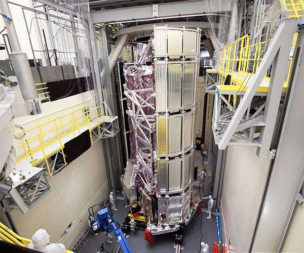 NASA's James Webb Space Telescope has successfully cleared another critical testing milestone, taking this ambitious observatory one step closer to its 2021 launch. The spacecraft has gone through its final thermal vacuum test meant to ensure that its hardware will function electronically in the vacuum of space, and withstand the extreme temperature variations it will encounter on its mission. One half of the Webb observatory, known as the "spacecraft element," completed this testing at the facilities of Northrop Grumman, the mission's lead industrial partner, in Los Angeles. The other half of Webb, which consists of the telescope and science instruments, has already successfully completed its thermal vacuum testing at NASA's Johnson Space Center in Houston prior to delivery at Northrop Grumman last year. In the most recent major environmental test, technicians and engineers locked the Webb spacecraft element inside a special thermal vacuum chamber. The testing team drained the atmosphere from the room to replicate the vacuum of space, and exposed the Webb spacecraft element to a wide range of hot and cold temperatures, spanning from minus 235 degrees Fahrenheit (minus 148 degrees Celsius) to a sweltering 215 degrees Fahrenheit (102 degrees Celsius). This variation of temperatures ensures the spacecraft will survive the extreme conditions it will actually experience in space. The spacecraft element consists of the "bus," which is the equipment that actually flies the observatory in space, plus the revolutionary five-layer tennis-court-size sunshield that will keep Webb's sensitive optics and instruments in the shade, and at their required super-cold operating temperatures. The spacecraft element is imperative to the success of Webb's scientific goals, and must be thoroughly tested and validated for flight. With the completion of this latest thermal vacuum test, all of Webb's components have been exposed to the varied conditions that they will encounter during launch, and while in orbit a million miles away from Earth. "The teams from Northrop Grumman and NASA Goddard Space Flight Center are to be commended for a successful spacecraft thermal vacuum test, dedicating long hours to get where we are now," said Jeanne Davis, program manager for the James Webb Space Telescope Program. "This incredible accomplishment paves the way for the next major milestone, which is to integrate the telescope and the spacecraft elements." The next steps will be to join both halves of Webb to form the fully assembled observatory and complete a final round of deployments, testing and evaluation prior to launch. A full deployment of the spacecraft element will verify that Webb is ready to proceed to the launch site. The James Webb Space Telescope will be the world's premier space science observatory. Webb will solve mysteries in our solar system, look beyond to distant worlds around other stars, and probe the mysterious structures and origins of our universe and our place in it. Webb is an international project led by NASA with its partners, ESA (European Space Agency) and the Canadian Space Agency.