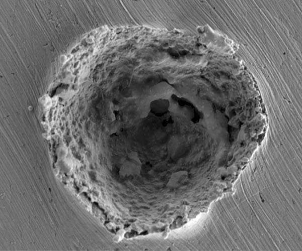 When tiny particles strike a metal surface at high speed - for example, as coatings being sprayed or as micrometeorites pummeling a space station - the moment of impact happens so fast that the details of process haven't been clearly understood, until now. A team of researchers at MIT has just accomplished the first detailed high-speed imaging and analysis of the microparticle impact process, and used that data to predict when the particles will bounce away, stick, or knock material off the surface and weaken it. The new findings are described in a paper appearing today in the journal Nature Communications. Mostafa Hassani-Gangaraj, an MIT postdoc and the paper's lead author, explains that high-speed microparticle impacts are used for many purposes in industry, for example, for applying coatings, cleaning surfaces, and cutting materials. They're applied in a kind of superpowered version of sandblasting that propels the particles at supersonic speeds. Such blasting with microparticles can also be used to strengthen metallic surfaces. But until now these processes have been controlled without a solid understanding of the underlying physics of the process. "There are many different phenomena that can take place" at the moment of impact, Hassani-Gangaraj says, but now for the first time the researchers have found that a brief period of melting upon impact plays a crucial role in eroding the surface when the particles are moving at speeds above a certain threshold. That's important information because the rule of thumb in industrial applications is that higher velocities will always lead to better results. The new findings show that this is not always the case, and "we should be aware that there is this region at the high end" of the range of impact velocities, where the effectiveness of the coating (or strengthening) declines instead of improving, Hassani-Gangaraj says. "To avoid that, we need to be able to predict" the speed at which the effects change. The results may also shed light on situations where the impacts are uncontrolled, such as when wind-borne particles hit the blades of wind turbines, when microparticles strike spacecraft and satellites, or when bits of rock and grit carried along in a flow of oil or gas erode the walls of pipelines. "We want to understand the mechanisms and exact conditions when these erosion processes can happen," Hassani-Gangaraj says. The challenge of measuring the details of these impacts was twofold. First, the impact events take place extremely quickly, with particles travelling at upward of one kilometer per second (three or four times faster than passenger jet airplanes). And second, the particles themselves are so tiny, about a tenth of the thickness of a hair, that observing them requires very high magnification as well. The team used a microparticle impact testbed developed at MIT, which can record impact videos with frame rates of up to 100 million frames per second, to perform a series of experiments that have now clearly delineated the conditions that determine whether a particle will bounce off a surface, stick to it, or erode the surface by melting. For their experiments, the team used tin particles of about 10 micrometers (hundred thousandths of a meter) in diameter, accelerated to speeds ranging up to 1 kilometer per second and hitting a tin surface. The particles were accelerated using a laser beam that instantly evaporates a substrate surface and ejects the particles in the process. A second laser beam was used to illuminate the flying particles as they struck the surface. Previous studies had relied on post-mortem analysis - studying the surface after the impact has taken place. But that did not allow for an understanding of the complex dynamics of the process. It was only the high-speed imaging that revealed that melting of both the particle and the surface took place at the moment of impact, in the high-speed cases. The team used the data from these experiments to develop a general model to predict the response of particles of a given size travelling at a given speed, says David Veysset, a staff researcher at MIT and co-author of the paper. So far, he says, they have used pure metals, but the team plans further tests using alloys and other materials. They also intend to test impacts at a variety of angles other than the straight-down impacts tested so far. "We can extend this to every situation where erosion is important," he says. The aim is to develop "one function that can tell us whether erosion will happen or not." That could help engineers "to design materials for erosion protection, whether it's in space or on the ground, wherever they want to resist erosion," Veysset says. The team included senior author Christopher Schuh, professor and head of the Department of Materials Science and Engineering, and Keith Nelson, professor of chemistry. The work was supported by the U.S. Department of Energy, the U.S. Army Research Office, and the Office of Naval research.