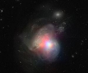 A new high-energy X-ray image from NASA's Nuclear Spectroscopic Telescope Array, or NuSTAR, has pinpointed the true monster of a galactic mashup. The image shows two colliding galaxies, collectively called Arp 299, located 134 million light-years away. Each of the galaxies has a supermassive black hole at its heart. NuSTAR has revealed that the black hole located at the right of the pair is actively gorging on gas, while its partner is either dormant or hidden under gas and dust. The findings are helping researchers understand how the merging of galaxies can trigger black holes to start feeding, an important step in the evolution of galaxies. "When galaxies collide, gas is sloshed around and driven into their respective nuclei, fueling the growth of black holes and the formation of stars," said Andrew Ptak of NASA's Goddard Space Flight Center in Greenbelt, Maryland, lead author of a new study accepted for publication in the Astrophysical Journal. "We want to understand the mechanisms that trigger the black holes to turn on and start consuming the gas." NuSTAR is the first telescope capable of pinpointing where high-energy X-rays are coming from in the tangled galaxies of Arp 299. Previous observations from other telescopes, including NASA's Chandra X-ray Observatory and the European Space Agency's XMM-Newton, which detect lower-energy X-rays, had indicated the presence of active supermassive black holes in Arp 299. However, it was not clear from those data alone if one or both of the black holes was feeding, or "accreting," a process in which a black hole bulks up in mass as its gravity drags gas onto it. The new X-ray data from NuSTAR - overlaid on a visible-light image from NASA's Hubble Space Telescope - show that the black hole on the right is, in fact, the hungry one. As it feeds on gas, energetic processes close to the black hole heat electrons and protons to about hundreds of millions of degrees, creating a superhot plasma, or corona, that boosts the visible light up to high-energy X-rays. Meanwhile, the black hole on the left either is "snoozing away," in what is referred to as a quiescent, or dormant state, or is buried in so much gas and dust that the high-energy X-rays can't escape. "Odds are low that both black holes are on at the same time in a merging pair of galaxies," said Ann Hornschemeier, a co-author of the study who presented the results Thursday at the annual American Astronomical Society meeting in Seattle. "When the cores of the galaxies get closer, however, tidal forces slosh the gas and stars around vigorously, and, at that point, both black holes may turn on." NuSTAR is ideally suited to study heavily obscured black holes such as those in Arp 299. High-energy X-rays can penetrate the thick gas, whereas lower-energy X-rays and light get blocked. Ptak said, "Before now, we couldn't pinpoint the real monster in the merger."